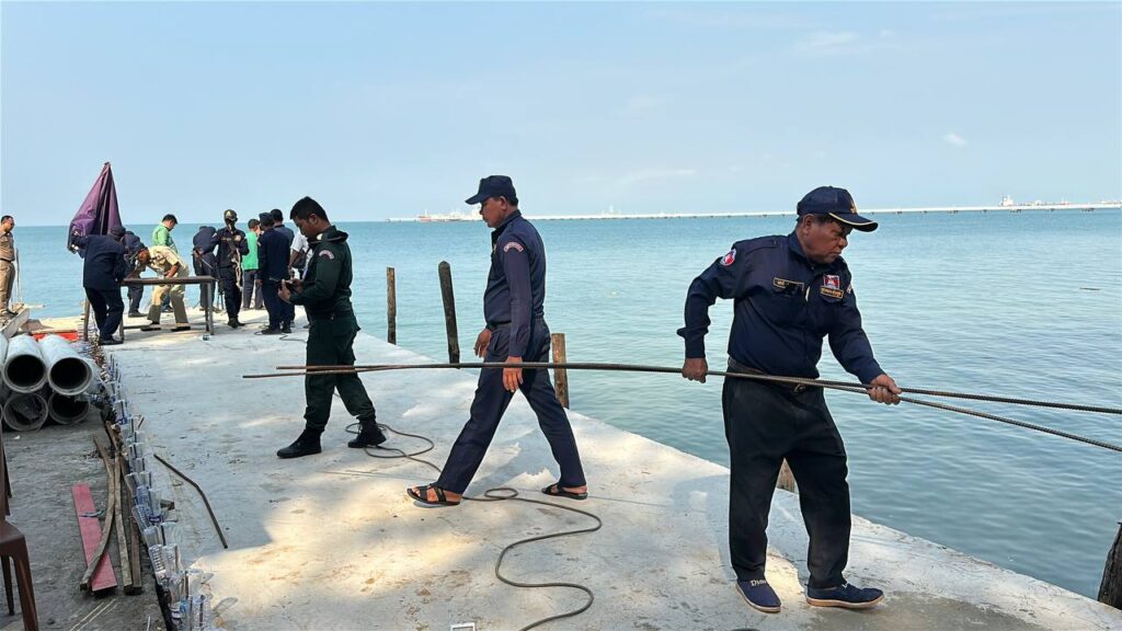 ១/ ក្រុមការងារបានវាយកម្ទេចសំណង់ផែដែលបានសាងសង់ចូលក្នុងសមុទ្រទាំងស្រុង និងបានប្រើប្រាស់រយៈពេលមួយថ្ងៃពេញ