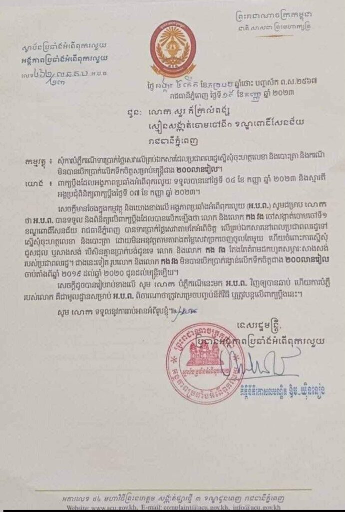 ដូច្នេះហើយ ទើបបានជាធ្វើឱ្យលោក កង វង ចៅសង្កាត់ចោមចៅទី១ កើតការមិនសប្បាយចិត្តប្រហែលជាប៉ះពាល់ទៅដល់ផលប្រយោជន៍របស់លោកឬយ៉ាងណា? ទើបចេញ វិដេអូរ រៀបរាប់ហៅឈ្មោះលោក ប៉ាង លីដា ចំៗ និងមានបំណងដេញលោក ប៉ាង លីដា ឱ្យចេញពីមុខតំណែងអភិបាលរងខណ្ឌពោធិ៍សែនជ័យនេះទៀតផង។