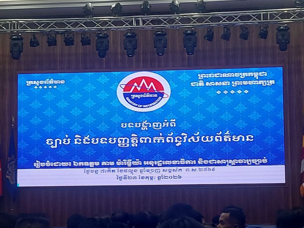 វគ្គបណ្ដុះបណ្ដាលស្ដីពី ÷ការលើកកម្ពស់អនុវត្តច្បាប់និងលិខិតបទដ្ឋានកិត្តិយុត្តិសម្រាប់អ្នកសារព័ត៌មានរយៈពេល បីថ្ងៃ ចាប់ពី ថ្ងៃចន្ទដល់ថ្ងៃពុធ9 កើតខែផល្គុនឆ្នាំម្សាញ់សព្វស័កពុទ្ធសករាជ 2569 ត្រូវនឹងថ្ងៃទី 25 ខែកុម្ភៈឆ្នាំ 2026 នៅសាលចតុមុខ ទីស្ដីការក្រសួងព័ត៌មាន