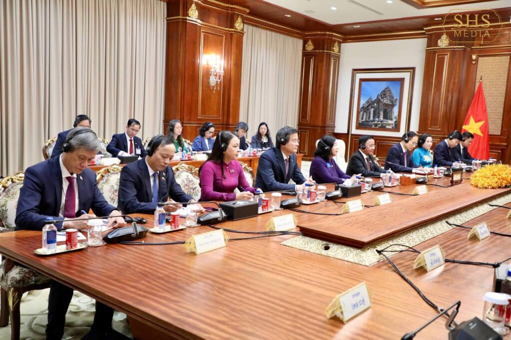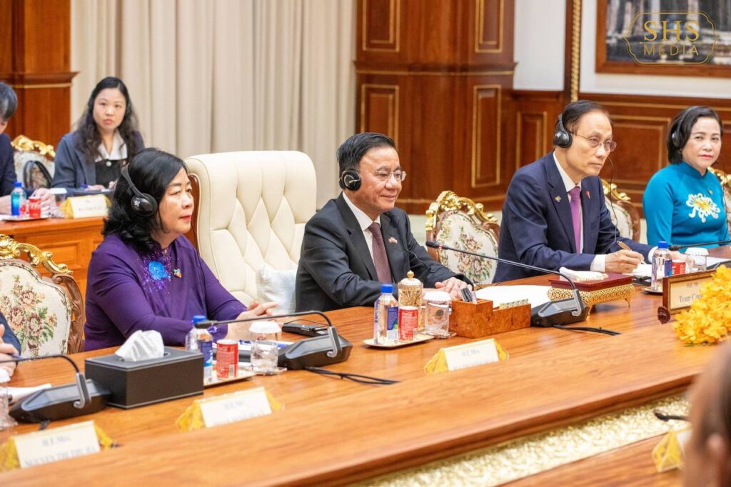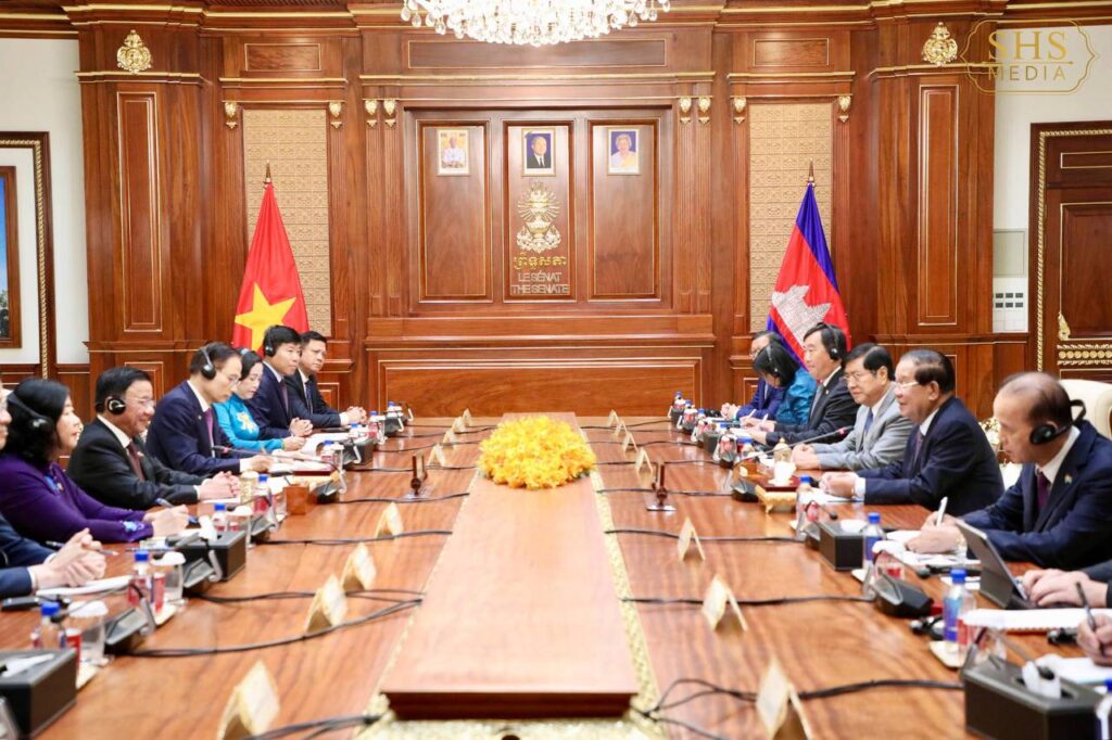 ភ្នំពេញ៖ សម្តេចអគ្គមហាសេនាបតីតេជោ ហ៊ុន សែន ប្រមុខរដ្ឋស្តីទីនៃព្រះរាជាណាចក្រកម្ពុជា និងជាប្រធានគណបក្សប្រជាជនកម្ពុជា អនុញ្ញាតឱ្យ ឯកឧត្តម ត្រិន កឹមទូ (Tran Cam Tu) សមាជិកការិយាល័យនយោបាយ និងជាសមាជិកប្រចាំការ គណៈលេខាធិការមជ្ឈិមបក្សកុម្មុយនីស្តវៀតណាម ចូលជួបសម្ដែងការគួរសម នៅវិមានសាមគ្គីភាពនៃព្រឹទ្ធសភាជាតិ រាជធានីភ្នំពេញ នាព្រឹកថ្ងៃទី១០ ខែមេសា ឆ្នាំ២០២៦។